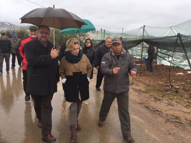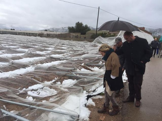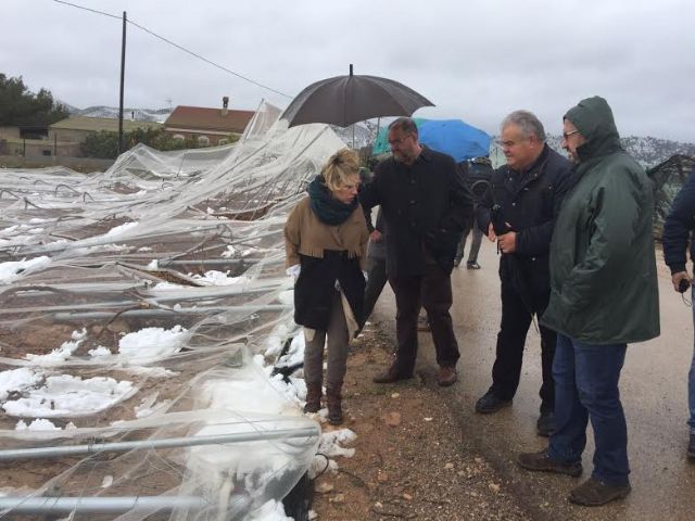The Minister of Water, Agriculture and the Environment, Adela Martínez Cachá, and the Mayor of Totana, Juan José Cánovas, today visited the table grapes damaged in different areas of the Diputación totanera of El Raiguero, as a result of the storm of Snow and that has caused numerous material damages in these infrastructures in a surface that is still to be precise.